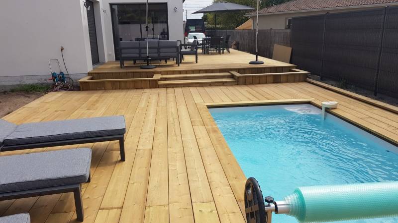 Chez Map 33, nous sommes fiers de nos réalisations et de la satisfaction que nous apportons à nos clients. C'est le cas de cette terrasse en bois avec tour de piscine en bois que nous avons réalisé pour le compte d'un couple qui voulait rendre l'extérieur de leur maison facilement praticable, tout en améliorant l'esthétique de leur jardin et du tour de leur piscine.